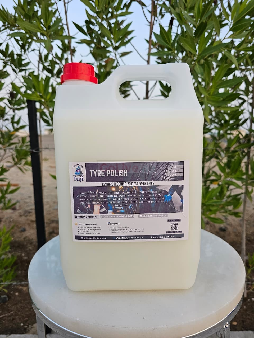 Shine smarter with Fuji Tyre Polish — a long-lasting, non-sticky formula that restores tyre blackness while protecting from UV damage and weathering.