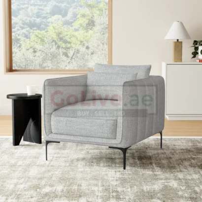 Built on a strong frame with stylish slim metal legs, the Rae chair blends contemporary design with cozy functionality — ideal for modern homes, lounges, or reading corners.